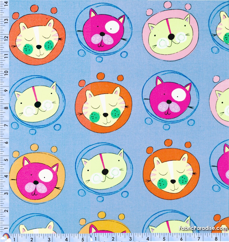 Cat Crazy - Whimsical Cat Portraits on Blue, Cats, Elkabee's FabricParadise.com, LLC