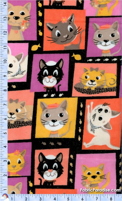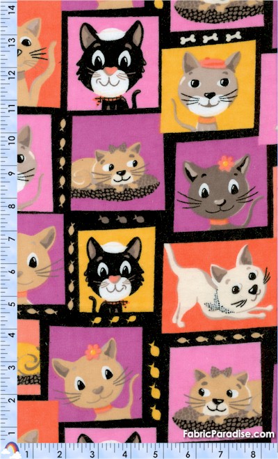 Meow Meow - Adorable Cat Portraits on FLANNEL, Dogs, Elkabee's FabricParadise.com, LLC