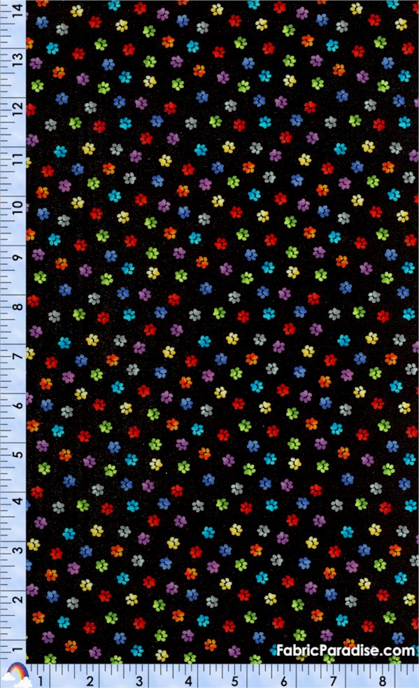 Mini Colorful Paws on Black (Digital), Dogs, Elkabee's FabricParadise.com, LLC