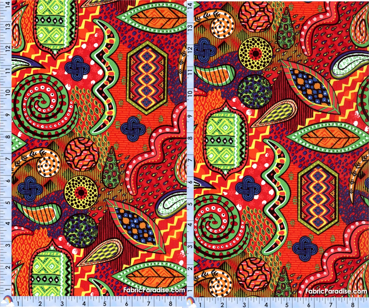 Savanna Sunrise - Celebration in Red by Whistler Studios, Ethnic, Elkabee's FabricParadise.com, LLC