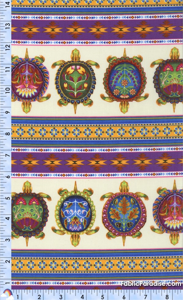 These richly-colored turtles feature cloisonné-style shells in jewel tones in stripes that alternate across the width of the fabric.