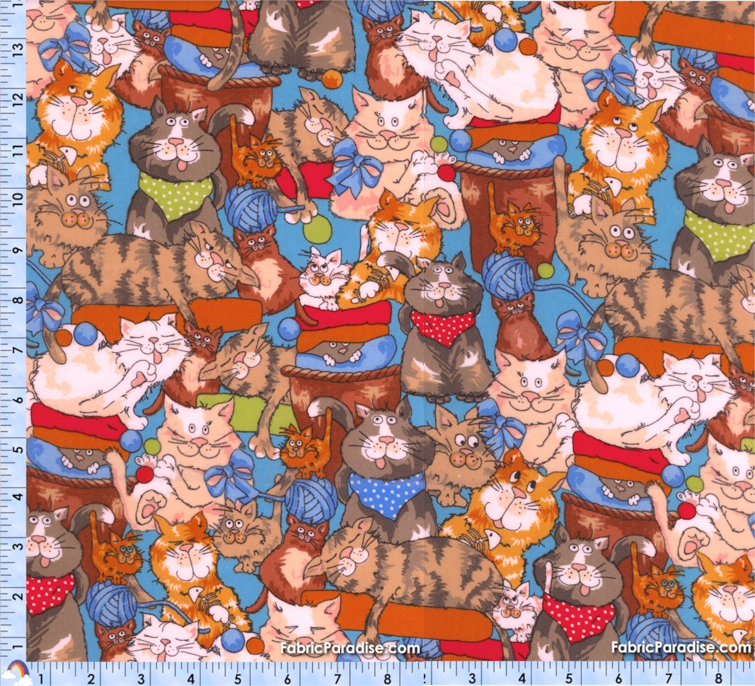 Crazy Cats - Whimsical Packed Cats on FLANNEL, Flannels, Elkabee's FabricParadise.com, LLC