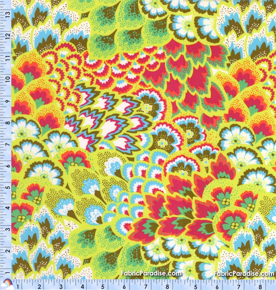 This exhuberant print by Amy Butler features flowers and feathers in striking colors. This is a beautiful fabric for quilting, decorating or apparel.
