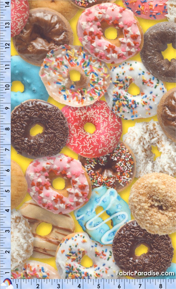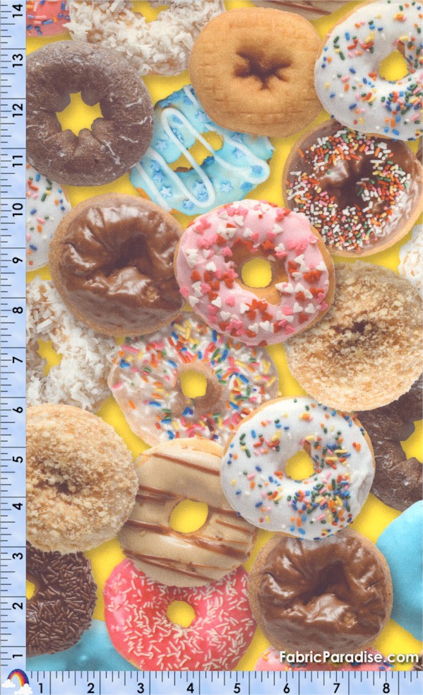 This mouth-watering print features lots and lots of fancy donuts with sprinkles, coconut, glaze, icing, crumbs...munchie heaven! Do click on the ’optional image’ link below the picture to see more yummy goodies!