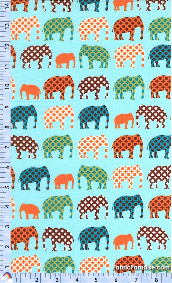 Urban Circus - Rows of Patterned Elephants on Blue, Animals, Elkabee's FabricParadise.com, LLC