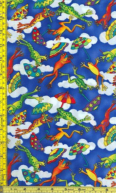 Rainbow Critters Colorful Cloud-Jumping Frogs, Animals, Elkabee's FabricParadise.com, LLC