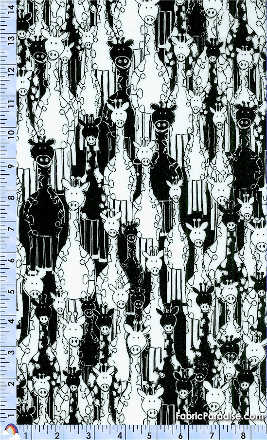 Cuddly Print Giraffes in Black and White FLANNEL, Animals, Elkabee's FabricParadise.com, LLC