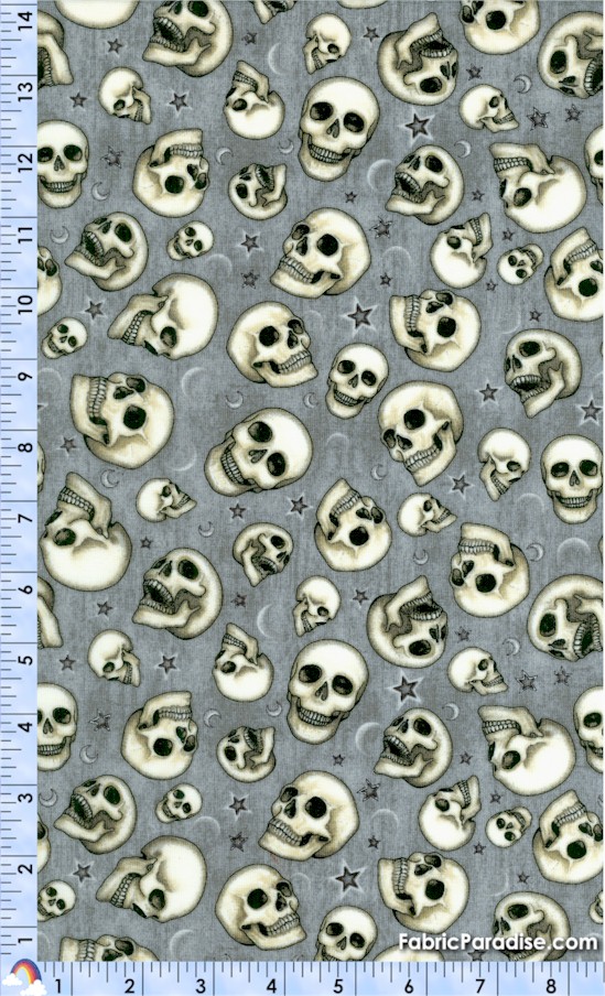 Spellbound - Tossed Skulls on Gray by Dan Morris, Miscellaneous, Elkabee's FabricParadise.com, LLC