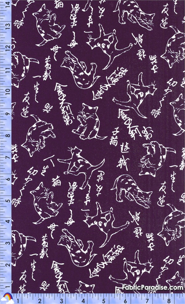 Indigo Collection - Adorable Kittens and Japanese Writing on Navy Blue, Oriental, Elkabee's FabricParadise.com, LLC