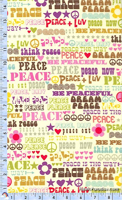 Think Peace - Retro Slogans on Cream, Retro, Elkabee's FabricParadise.com, LLC