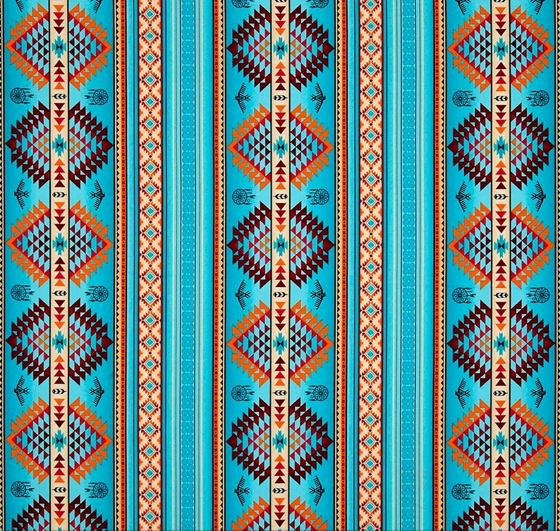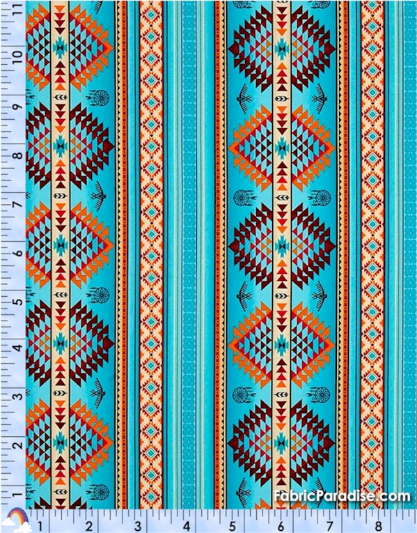 Tucson - Turquoise Vertical Stripe, Southwest, Elkabee's FabricParadise.com, LLC