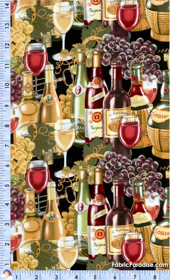 Italian Vineyards - Wine Bottles, Glasses and Grapes, Wine & Grapes, Elkabee's FabricParadise.com, LLC