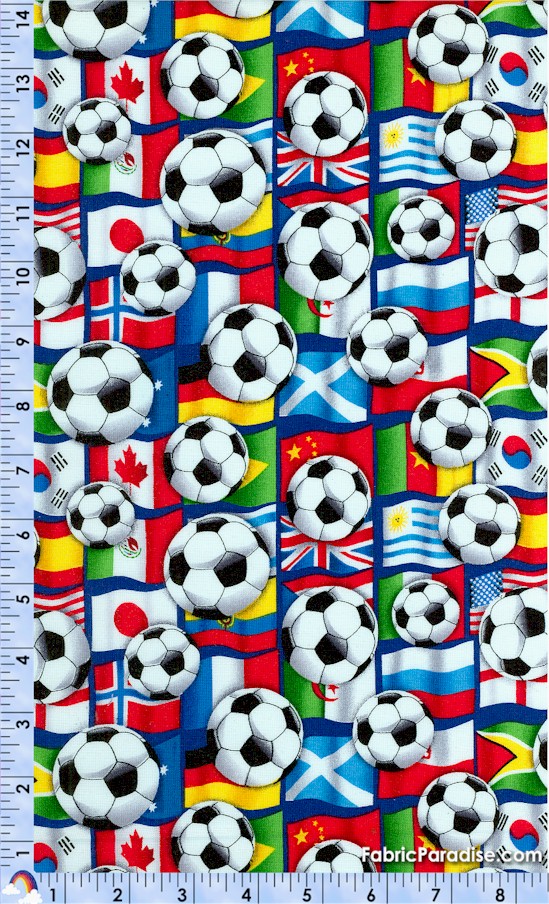 Soccer Balls on Packed International Flags, Soccer, Elkabee's FabricParadise.com, LLC