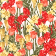 Sprint on the Farm - Small Scale Tulips and Daffodils on Ivory - SALE! (MINIMUM PURCHASE 1 YARD)
