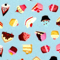 Celebrate! Tossed Petite Desserts on Aqua - SALE! (MINIMUM PURCHASE 1 YARD)