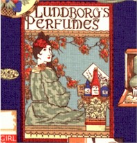 Antique Scrapbook - Vintage Cosmetics Collage on Blue - SALE! (MINIMUM PURCHASE 1 YARD)
