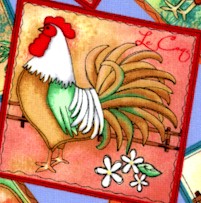 Morning Wake Up - Tossed Patchwork Roosters - SALE! (MINIMUM PURCHASE 1 YARD)