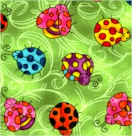 Dancing Bugs 2 - Tossed Ladybugs on Green - SALE! (MINIMUM PURCHASE 1 YARD)