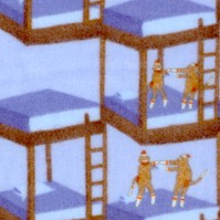 Goodnight Monkey - Coming and Going on Blue FLANNEL by Erin Michael