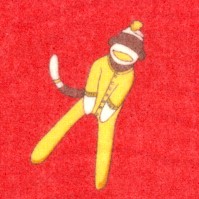 Monkey ’n Round - Whimsical Sock Monkey Portraits on Red by Erin Michael